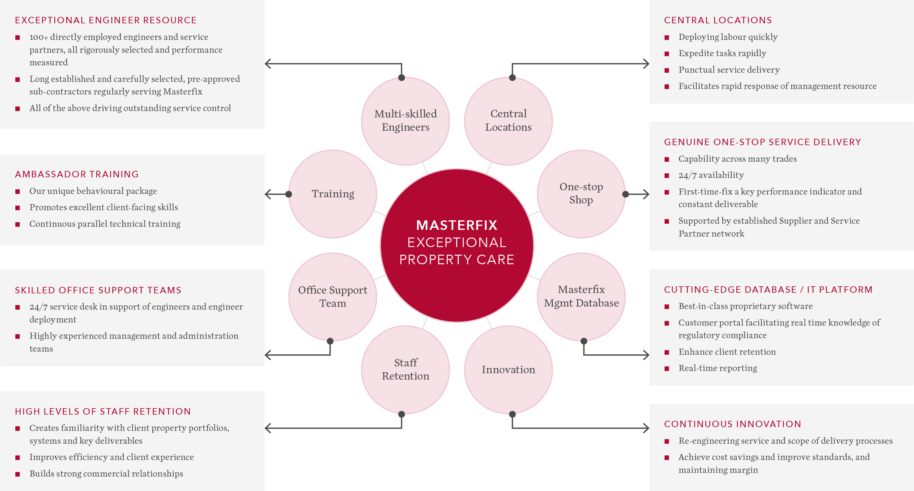 Masterfix was founded in 2009 to deliver exceptional property maintenance services. We serve residential and commercial managing agents, landlords and freeholders, retailers, hospitality providers, insurers and policyholders. Our range of in-house services and genuine single source service delivery is unrivalled in our marketplace.