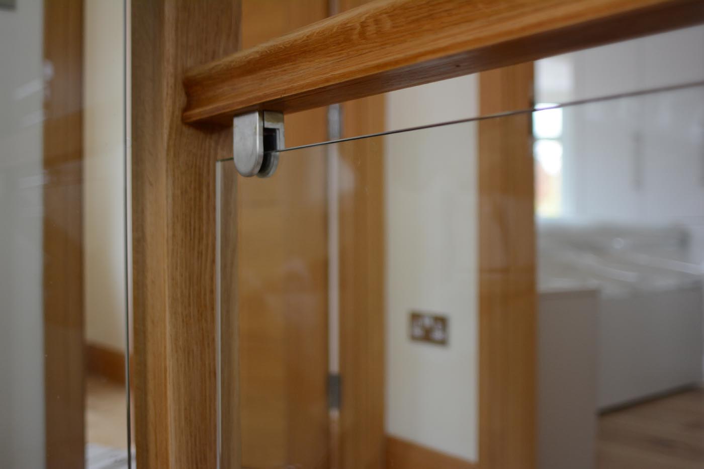 The existing oak joinery was replaced at the upper levels, and at lower levels the existing doorsets and skirtings were freshened up with new lacquer varnish. The stairs were sanded back to raw oak and coats of stain and varnish applied until a match with the existing finishes was achieved.